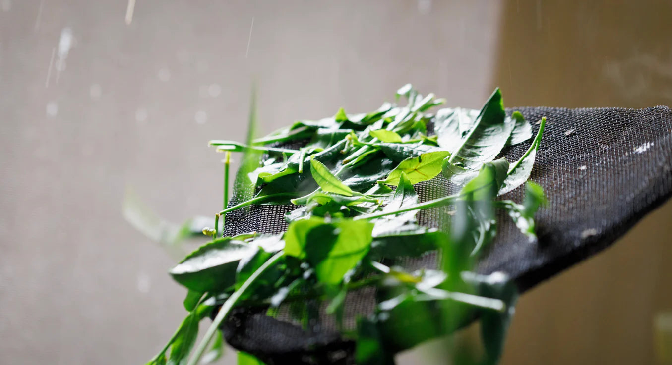 El sombreado previo a la cosecha multiplica el contenido de clorofila, responsable de ese color verde vibrante. La clorofila actúa como desintoxicante natural, favorece la oxigenación de la piel y contribuye a la eliminación de toxinas.